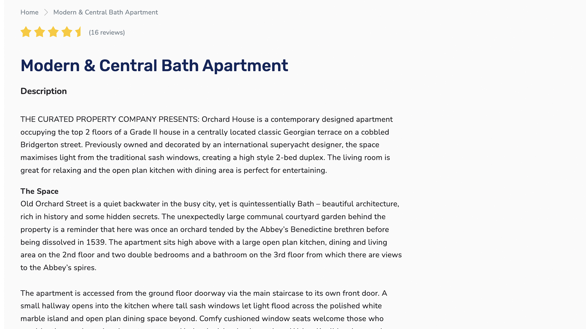 Creating the description for each individual rental property involves thorough research, both online and from other sources. Each property’s story is crafted into a balance of historical, interior design and local knowledge in an involving and informative way, to suit the corporate style.